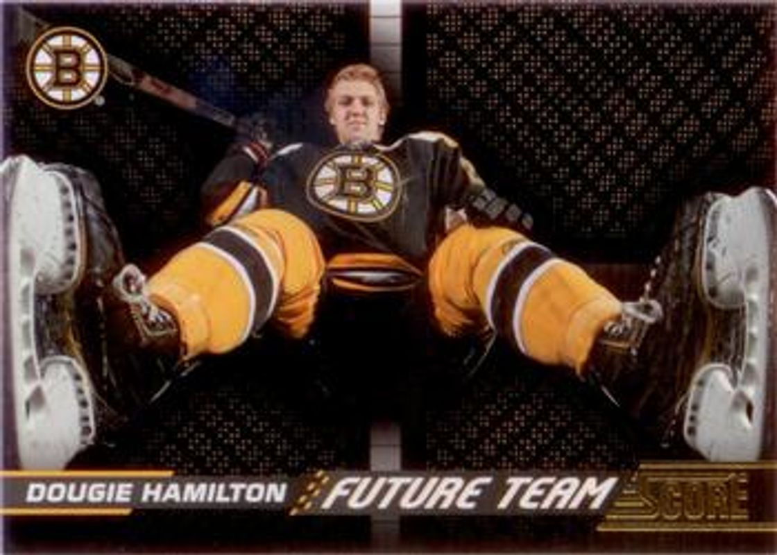 The Dougie Hamilton 2013 Score #FS-5 Future Team Score Rookie card is 1 of 11 Dougie Hamilton's card variations in the 2013 Score set being tracked by Sports Card Investor, including Base, Black, Gold, Red, and Red Back.
