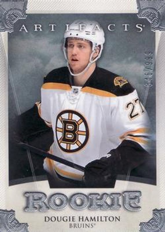 The Dougie Hamilton 2013 Upper Deck Artifacts #163 Base /899 Rookie card is 1 of 15 Dougie Hamilton's card variations in the 2013 Upper Deck Artifacts set being tracked by Sports Card Investor, including Ruby /299, Emerald /99, Sapphire /85, Spectrum /25, and Black /5.