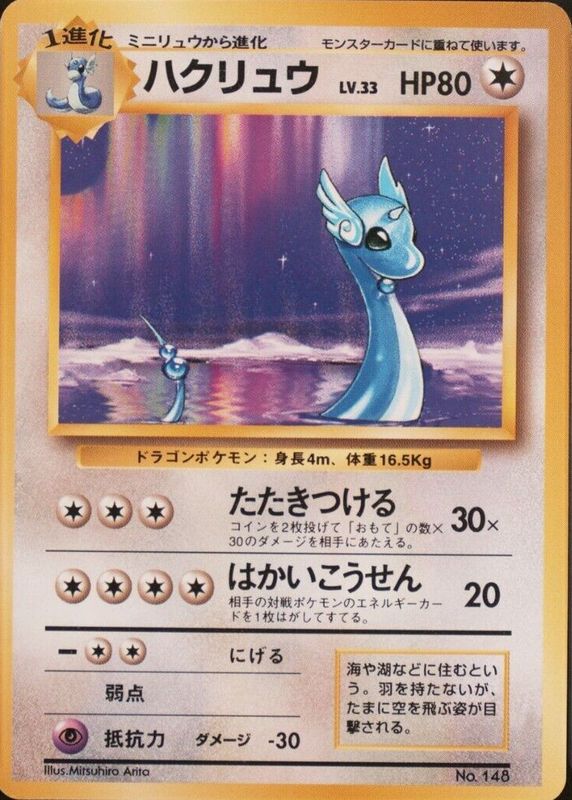 The Dragonair 1996 Japanese Base Set #148 Base - No Rarity Symbol card in Raw TCG (Lightly Played) condition has not changed in price in the last 30 days and was last sold for $100.00 .