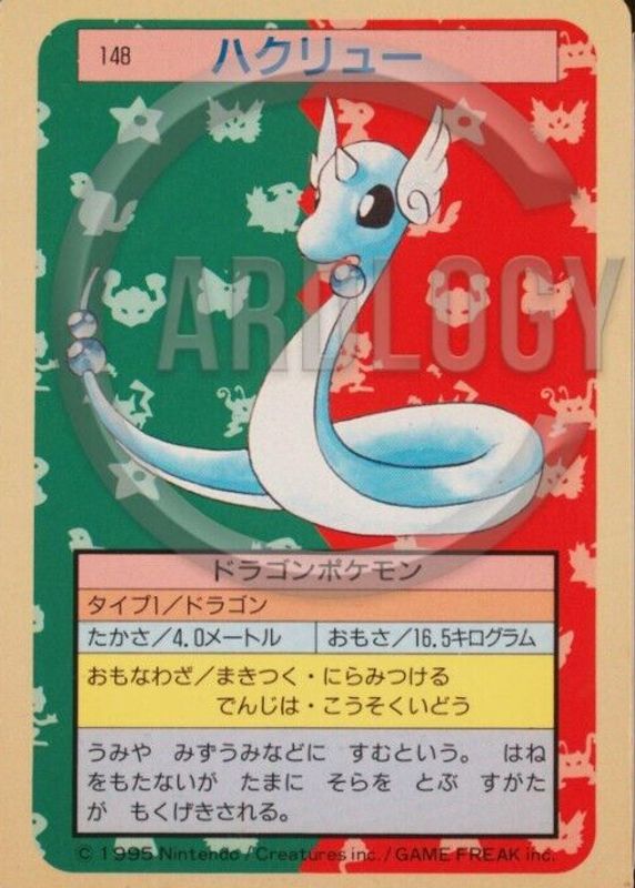 This card is 1 of 2 Dragonair's card variations in the 1997 Japanese Topsun set being tracked by Sports Card Investor, including Green Back (2nd Edition).