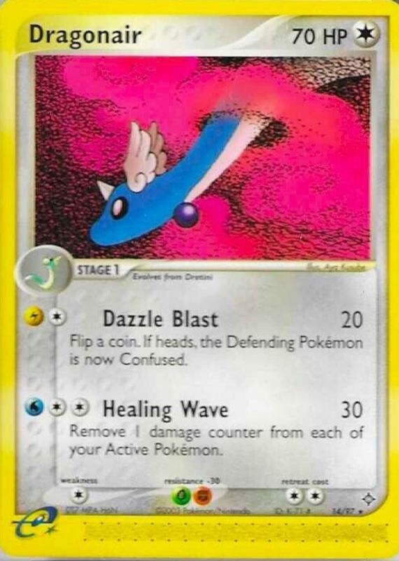 The Dragonair 2003 EX: Dragon #14/97 Base card in Raw TCG (Near Mint) condition has moved up $3.75 (+136%) in the last 30 days and was last sold for $6.50 .