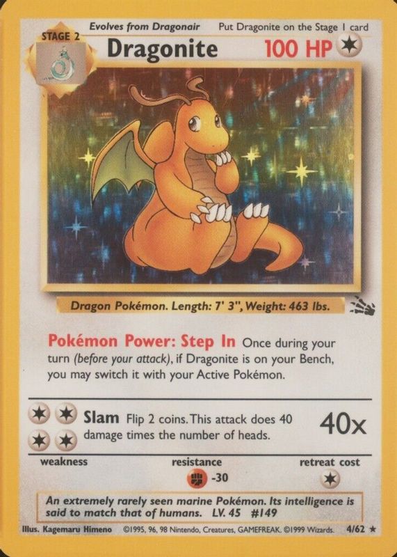 Pokemon Fossil Dragonite 4/62 Holo (Near Mint)