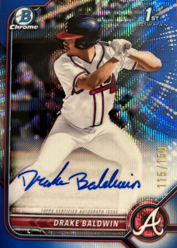 DRAKE BALDWIN 2022 1st Bowman Draft Chrome Blue Wave Refractor Auto /150 CDA-DBN
