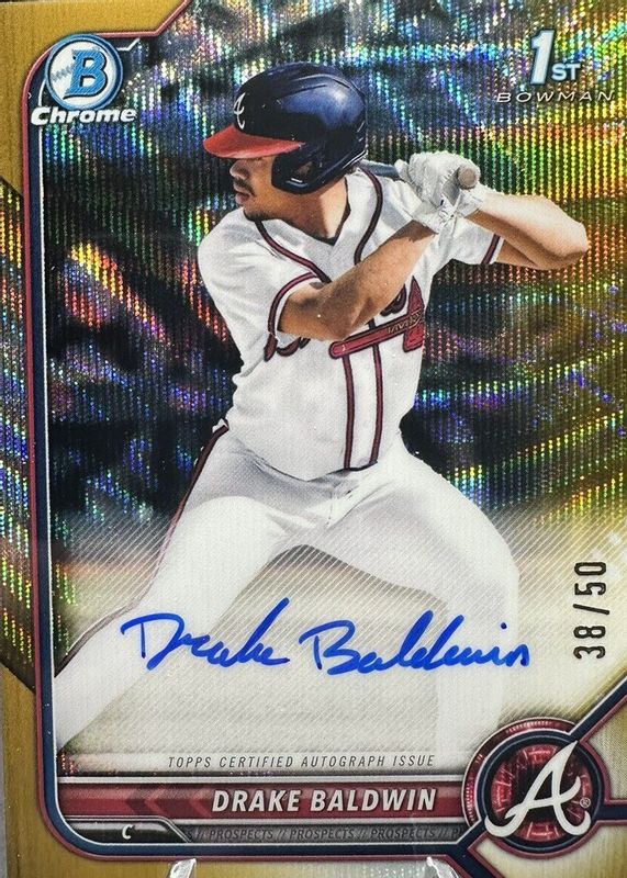 DRAKE BALDWIN 2022 Bowman Draft Chrome 1st Gold Wave Refractor Auto 18/50 Braves