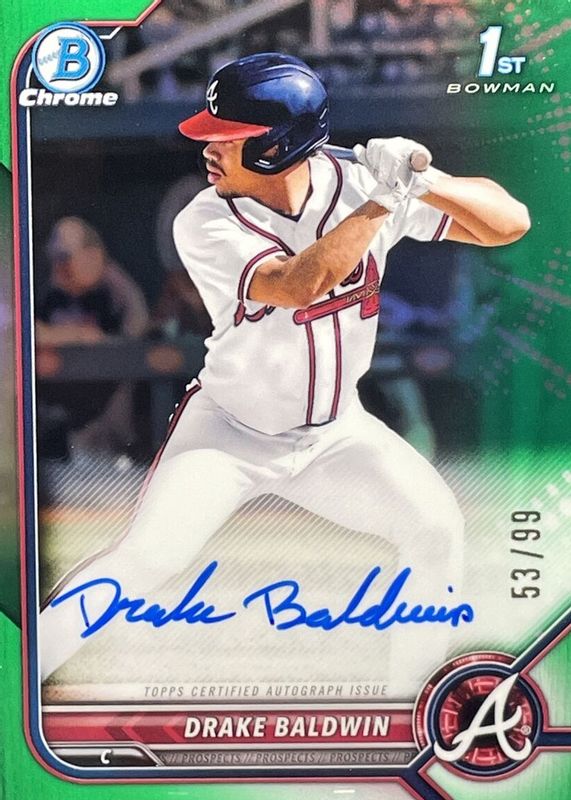 2022 Bowman Draft Drake Baldwin Chrome Green Auto 1st /99 #CDA-DBN Braves ROY