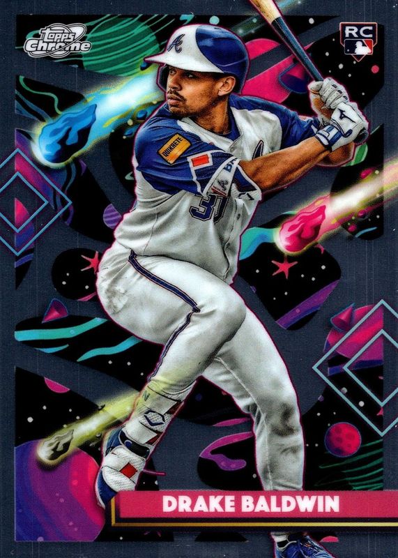 The Drake Baldwin 2025 Topps Chrome Cosmic #96 Base Rookie card in Raw condition has moved up $0.00 (+0.1%) in the last 30 days and was last sold for $2.37 .