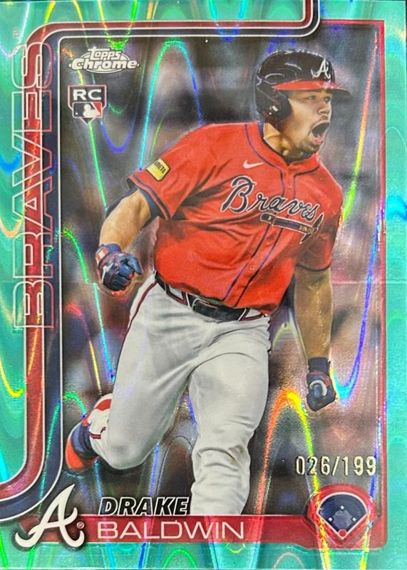 The Drake Baldwin 2025 Topps Chrome Update #USC96 Aqua RayWave Refractor /199 Rookie card in Raw condition has not changed in price in the last 30 days and was last sold for $13.39 .
