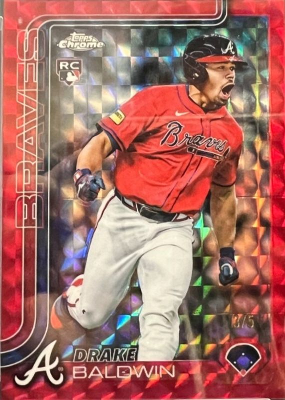 Auctions Ending Soon for Drake Baldwin 2025 Topps Chrome Update #USC96 Red Geometric Refractor /5 Rookie RAW