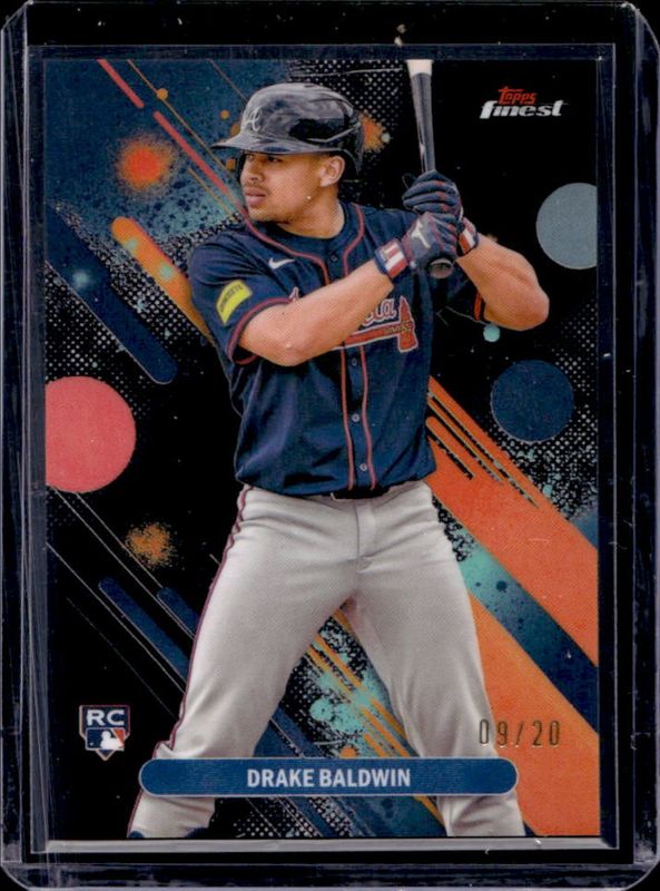 The Drake Baldwin 2025 Topps Finest #21 Base Common - Black Refractor /20 Rookie card is 1 of 124 Drake Baldwin's card variations in the 2025 Topps Finest set being tracked by Sports Card Investor, including Common, Rare, Uncommon, Common - Checkerboard Refractor, and Common - Refractor.