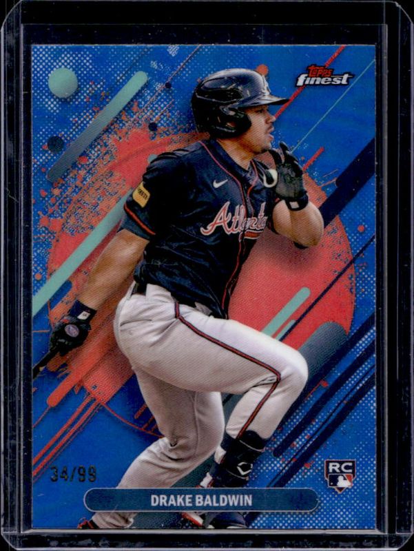 The Drake Baldwin 2025 Topps Finest #287 Base Rare - Blue Refractor /99 Rookie card is 1 of 124 Drake Baldwin's card variations in the 2025 Topps Finest set being tracked by Sports Card Investor, including Common, Rare, Uncommon, Common - Checkerboard Refractor, and Common - Refractor.