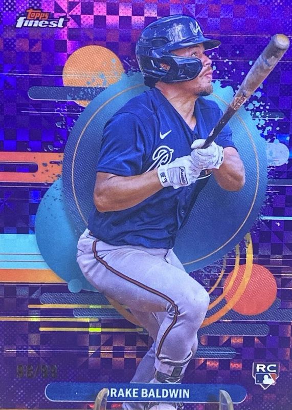 The Drake Baldwin 2025 Topps Finest #183 Uncommon - Purple Checkerboard Refractor /99 Rookie card in Raw condition has not changed in price in the last 30 days and was last sold for $4.25 .