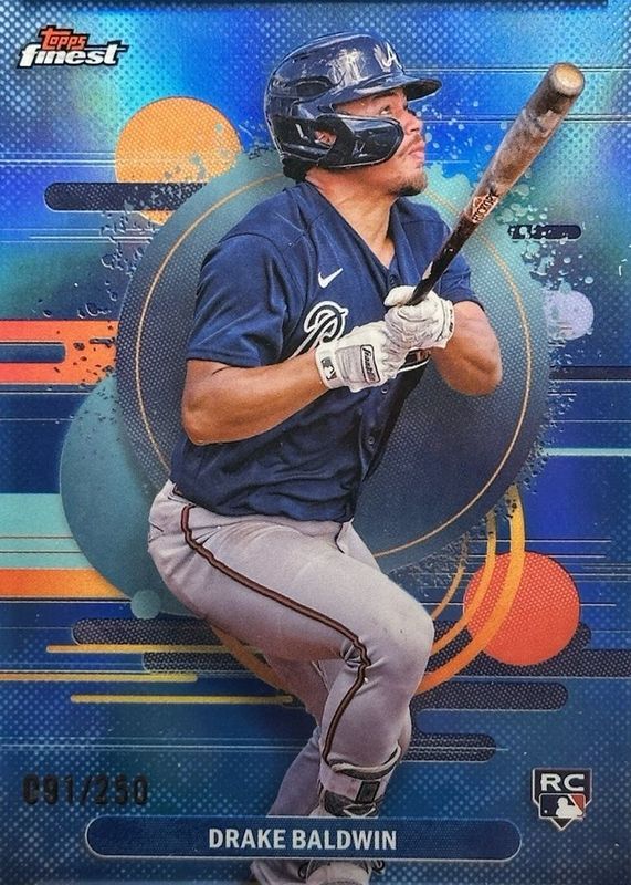 The Drake Baldwin 2025 Topps Finest #183 Uncommon - Sky Blue Refractor /250 Rookie card in Raw condition has not changed in price in the last 30 days and was last sold for $9.99 .