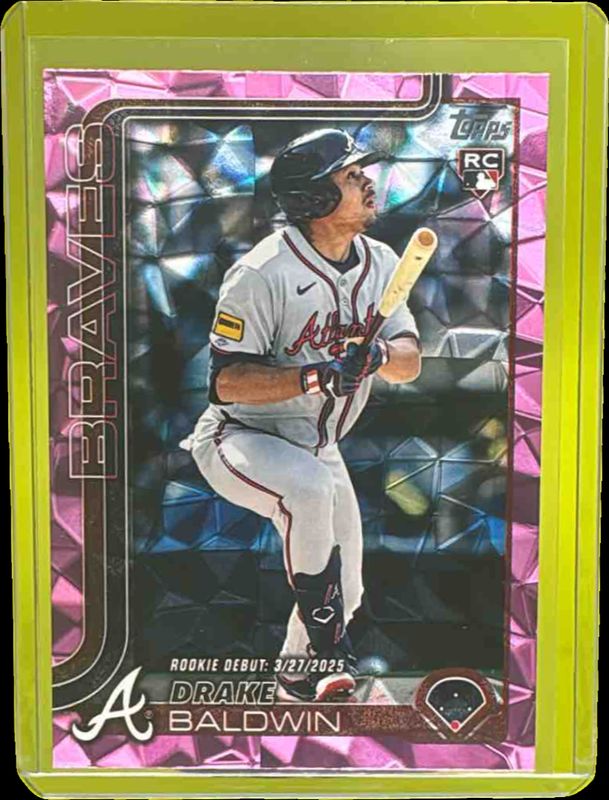The Drake Baldwin 2025 Topps Update #US113 Rookie Debut - Pink Diamante Foil card in Raw condition has moved down -$2.05 (-34.2%) in the last 30 days and was last sold for $3.95 .