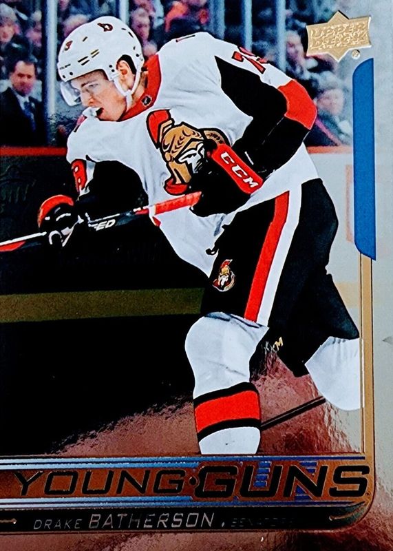 The Drake Batherson 2018 Upper Deck #484 Young Guns - Silver Foil Rookie card in Raw condition has not changed in price in the last 30 days and was last sold for $35.55 .