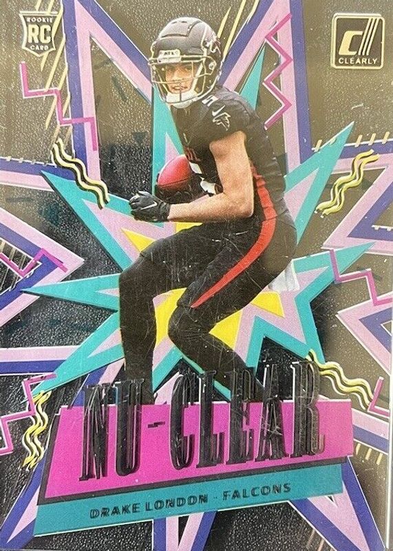 The Drake London 2022 Clearly Donruss #N-13 Nu-Clear /(SSP) Rookie card in Raw condition has not changed in price in the last 30 days and was last sold for $22.50 .