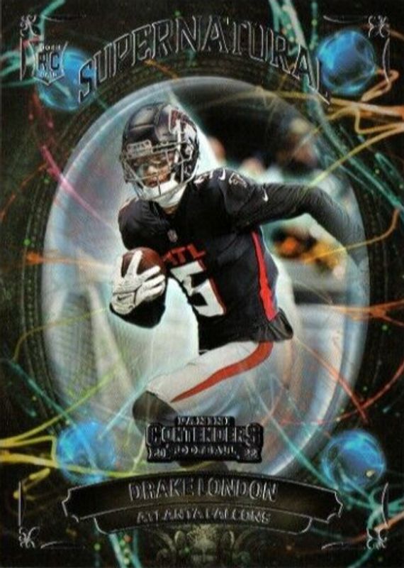 The Drake London 2022 Contenders #SN-DLO Supernatural Rookie card in Raw condition has moved up $0.33 (+33.3%) in the last 30 days and was last sold for $1.32 .