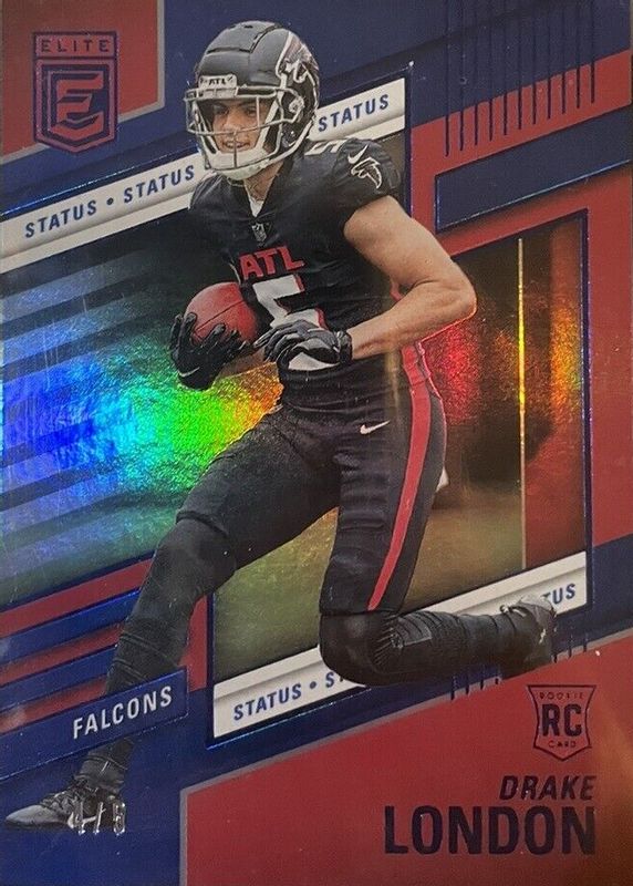 The Drake London 2022 Elite #120 Status (/5) Rookie card in Raw condition has not changed in price in the last 30 days and was last sold for $20.50 .