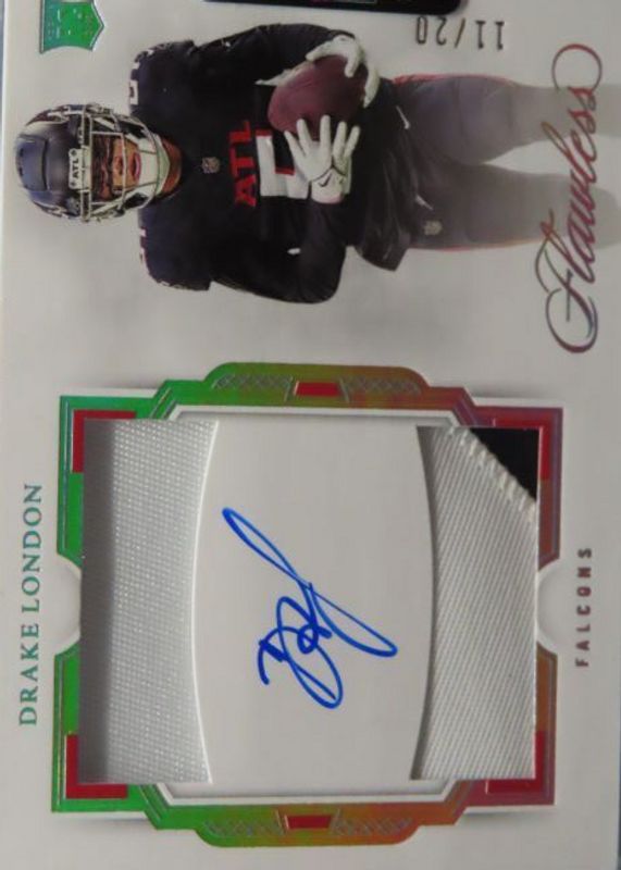 Drake London 2022 Flawless #RDP-DL Rookie Dual Patch Auto - Silver /20 RAW Price Guide