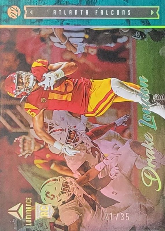 This card is 1 of 9 Drake London's card variations in the 2022 Luminance set being tracked by Sports Card Investor, including Base, Gold /249, Blue /149, Green /99, and Orange /50.