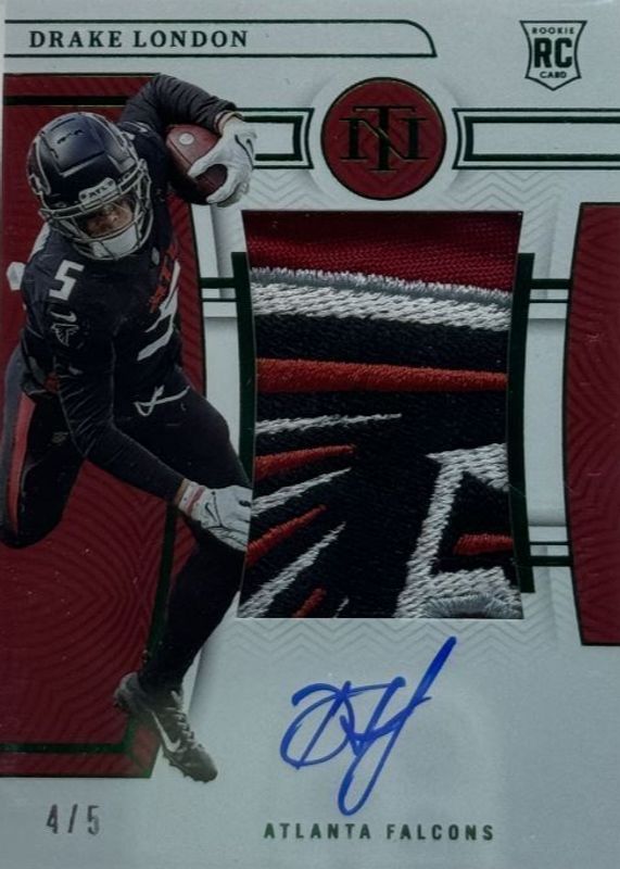 Drake London 2022 National Treasures #166 Rookie Patch Auto - Green Jersey Number (/5) RAW Price Guide