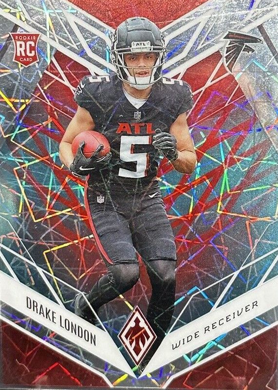 This card is 1 of 30 Drake London's card variations in the 2022 Phoenix set being tracked by Sports Card Investor, including Base, Color Burst, Onyx (/5), Red Mojo (/10), and Silver.