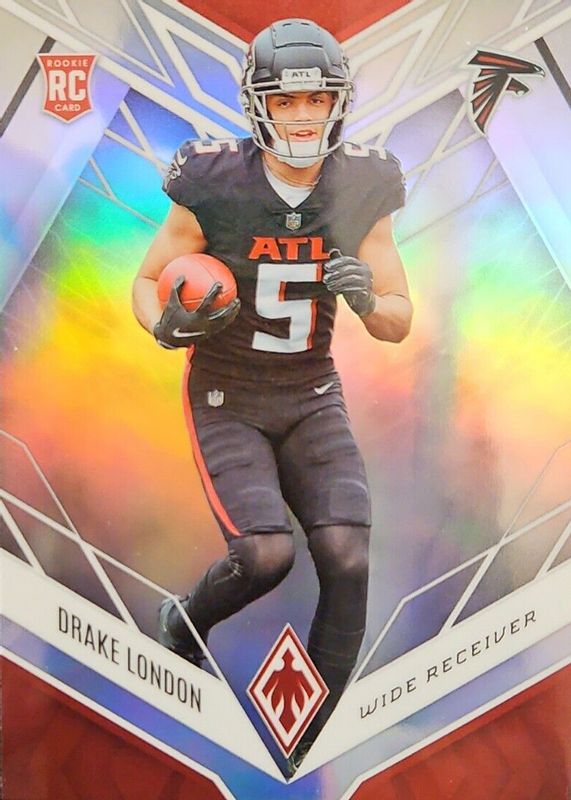 This card is 1 of 30 Drake London's card variations in the 2022 Phoenix set being tracked by Sports Card Investor, including Base, Color Burst, Onyx (/5), Red Mojo (/10), and Silver Lazer.