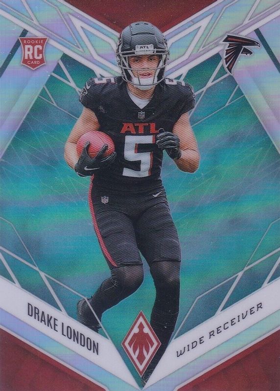 This card is 1 of 30 Drake London's card variations in the 2022 Phoenix set being tracked by Sports Card Investor, including Base, Color Burst, Onyx (/5), Red Mojo (/10), and Silver.