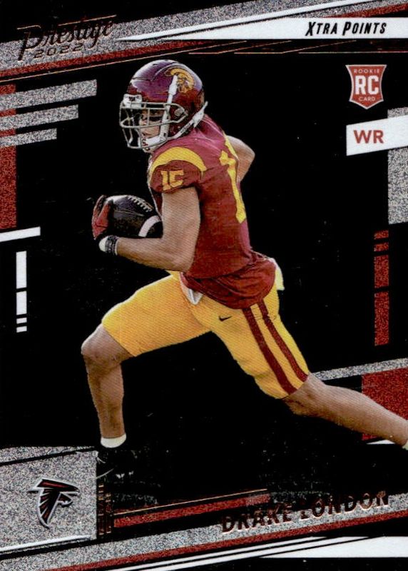 This card is 1 of 27 Drake London's card variations in the 2022 Prestige set being tracked by Sports Card Investor, including Base, Xtra Points Astral, Xtra Points Diamond, Xtra Points Galaxy, and Xtra Points Sunburst.