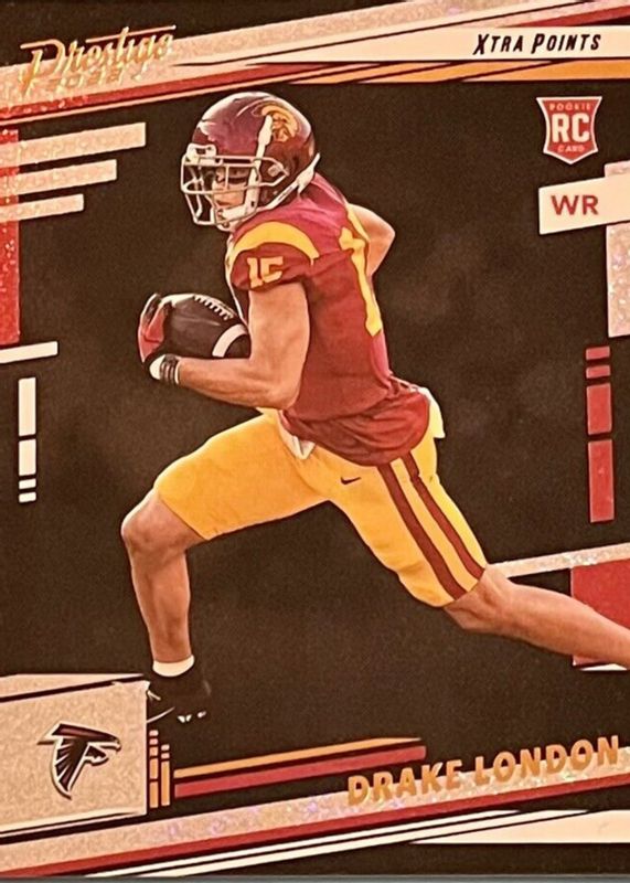 This card is 1 of 27 Drake London's card variations in the 2022 Prestige set being tracked by Sports Card Investor, including Base, Xtra Points Astral, Xtra Points Diamond, Xtra Points Dots, and Xtra Points Sunburst.