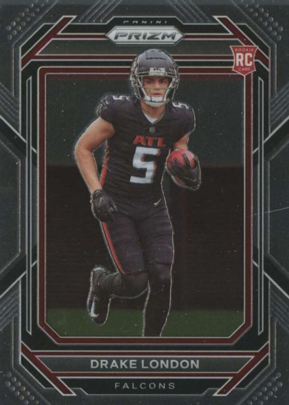 The Drake London 2022 Prizm #308 Base Rookie card in Raw condition has moved up $0.01 (+1.0%) in the last 30 days and was last sold for $1.00 .