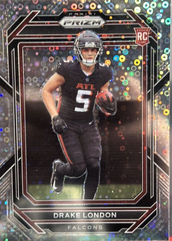 This card is 1 of 116 Drake London's card variations in the 2022 Prizm set being tracked by Sports Card Investor, including Base, Green, Green Ice, Light Blue, and Orange Ice.