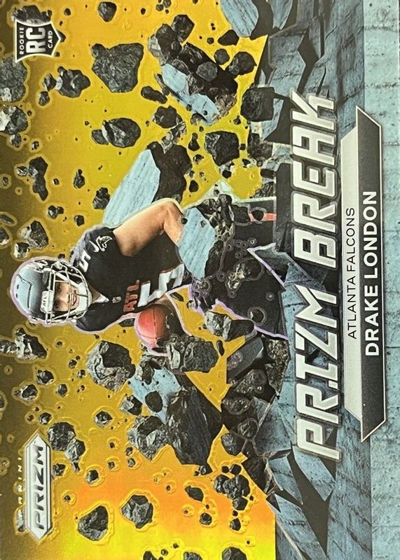 The Drake London 2022 Prizm #PB-7 Prizm Break - Gold /10 Rookie card in Raw condition has not changed in price in the last 30 days and was last sold for $36.00 .