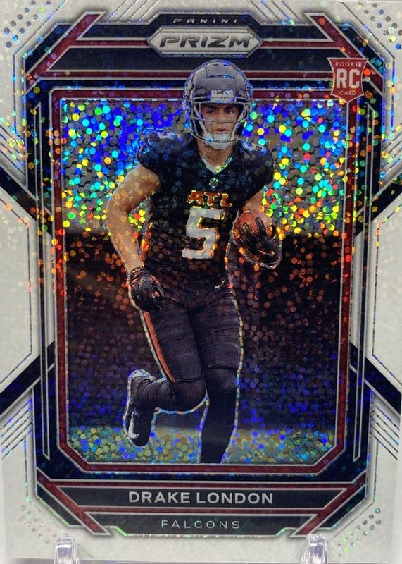 The Drake London 2022 Prizm #308 White Sparkle /(SSP) Rookie card in Raw condition has not changed in price in the last 30 days and was last sold for $121.69 .