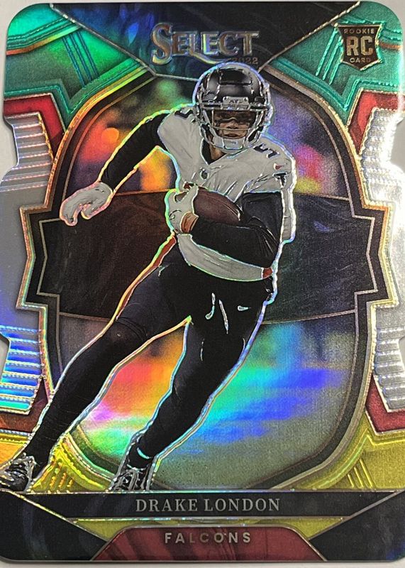 The Drake London 2022 Select #35 Concourse Green & Yellow Die-Cut Rookie card in Raw condition has moved up $0.25 (+25.0%) in the last 30 days and was last sold for $1.25 .