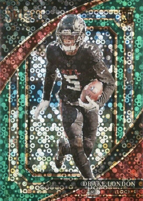 This card is 1 of 143 Drake London's card variations in the 2022 Select set being tracked by Sports Card Investor, including Club Level, Concourse, Field Level, Suite Level, and Club Level Black & Green Die-Cut.
