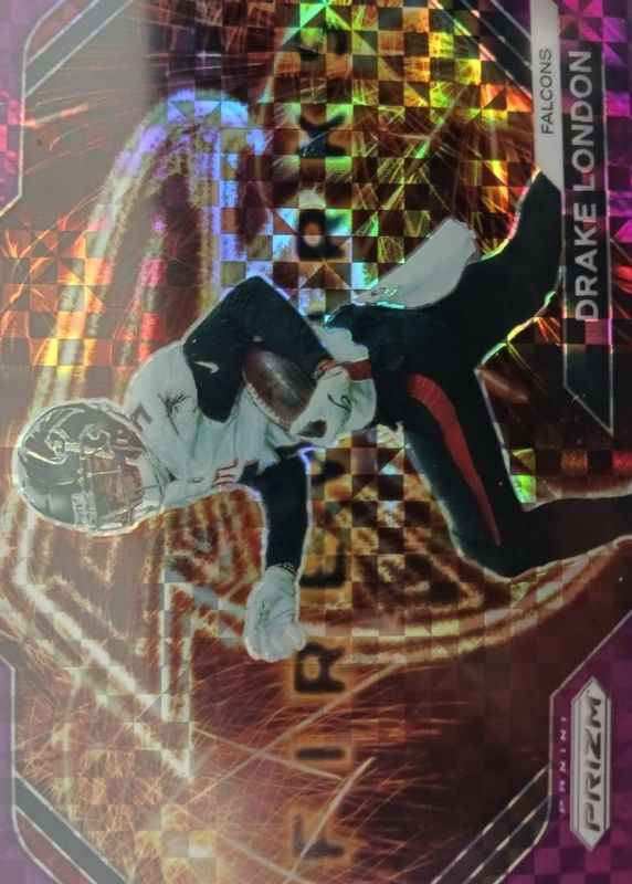 The Drake London 2023 Prizm #F-25 Fireworks - Purple Power /49 card in Raw condition has not changed in price in the last 30 days and was last sold for $13.50 .