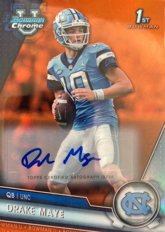 2023 Bowman U Chrome Drake Maye 1st Orange Auto 5/25- UNC/Pats