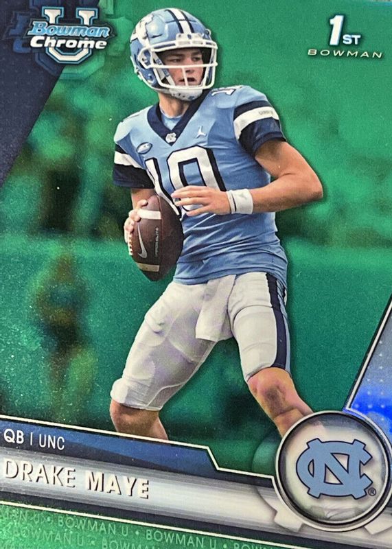 Best Prices Available For Sale of Drake Maye 2023 Bowman Chrome University #200 Prospects - Green Refractor /99 (1st)