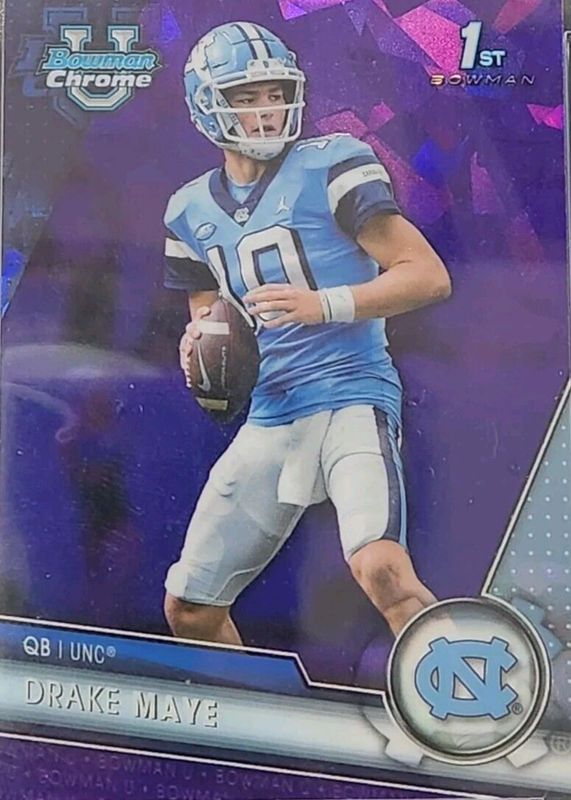 Best Prices Available For Sale of Drake Maye 2023 Bowman Chrome University Sapphire Edition #200 Purple /10 (1st)
