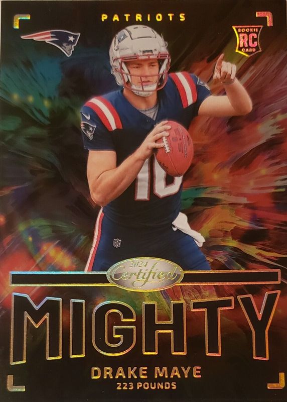The Drake Maye 2024 Certified #TM-DM The Mighty /(SSP) Rookie card in Raw condition has not changed in price in the last 30 days and was last sold for $129.99 .