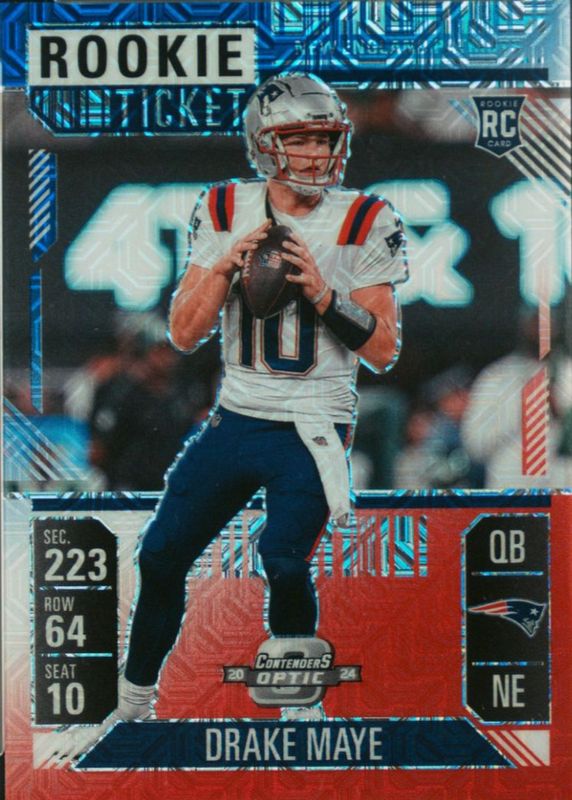 Drake Maye 2024 Contenders Optic #70 Red White Blue /13 Rookie RAW Price Guide