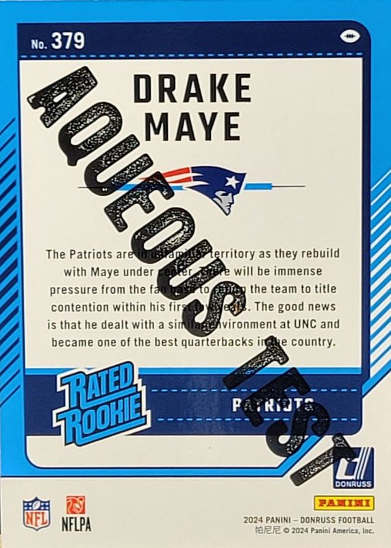 2024 Donruss Drake Maye Rated Rookie #379 Aqueous Test Card