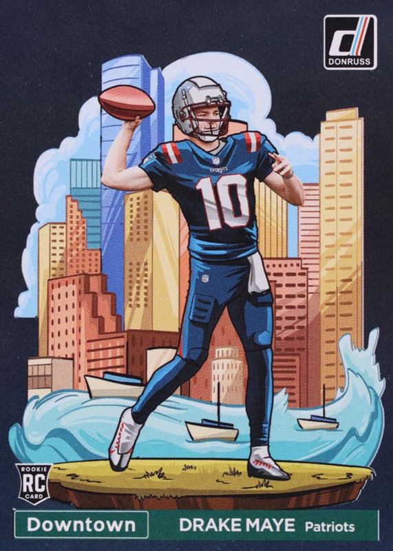 The Drake Maye 2024 Donruss #13 Downtown - Black /1 Rookie card in Raw condition has not changed in price in the last 30 days.