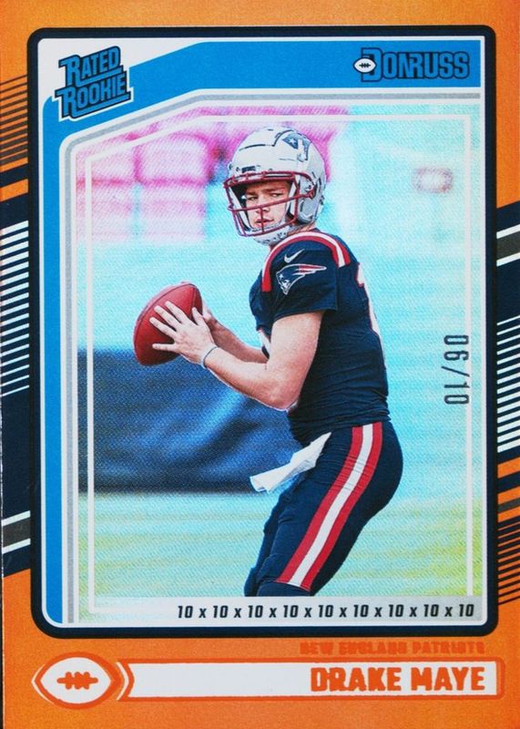 The Drake Maye 2024 Donruss #379 Jersey Number (/10) Rookie card in Raw condition has not changed in price in the last 30 days and was last sold for $537.55 .