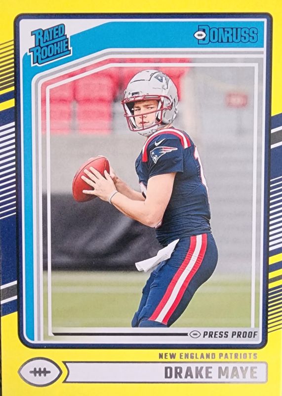 2024 Donruss Rated Rookie Drake Maye Yellow Press Proof New England Patriots