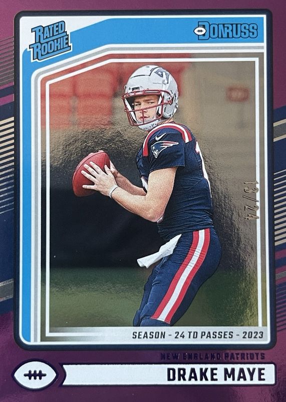 2024 Donruss Drake Maye Rated Rookie Season Stat Line /24 - Patriots RC
