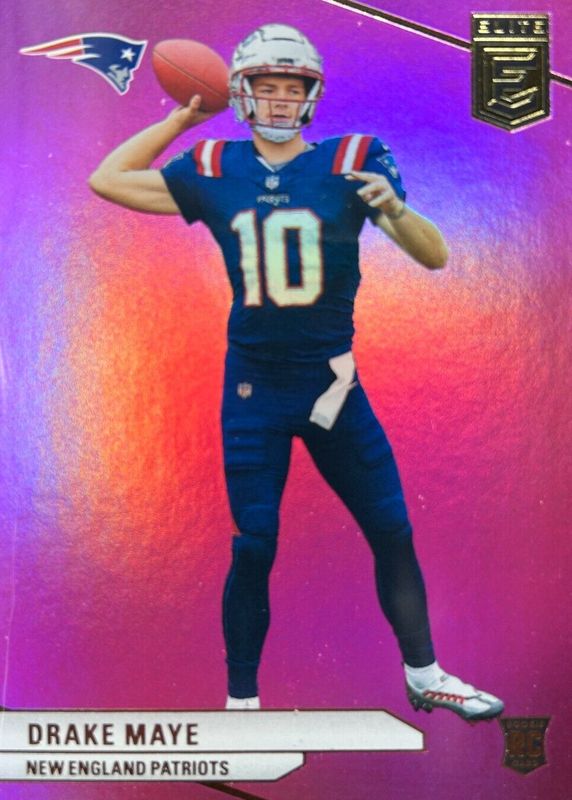 The Drake Maye 2024 Elite #185 Pink Rookie card in Raw condition has moved up $14.40 (+160%) in the last 30 days and was last sold for $23.40 .
