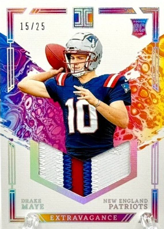 2024 Impeccable Extravagance Drake Maye Patriots RC Rookie 3-Color Patch 6/25