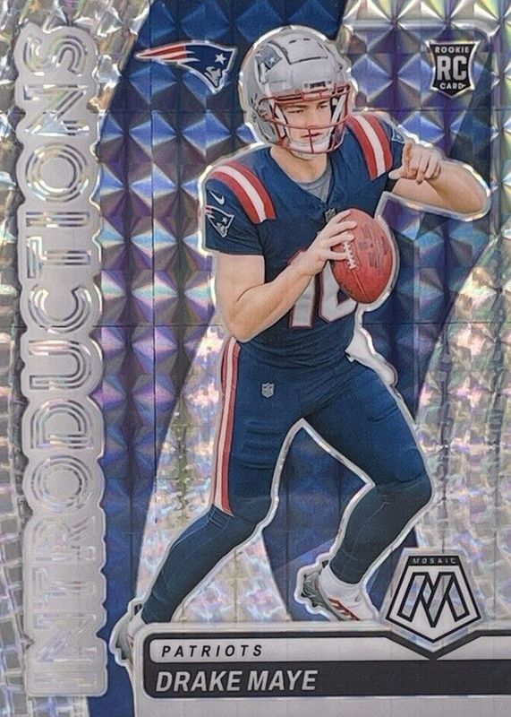 The Drake Maye 2024 Mosaic #1 Introductions - Mosaic Rookie card in Raw condition has not changed in price in the last 30 days and was last sold for $29.99 .