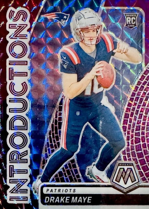 🔥DRAKE MAYE🔥2024 PANINI MOSAIC-PURPLE PRIZM 47/49 INTRODUCTIONS RC #1 Patriots